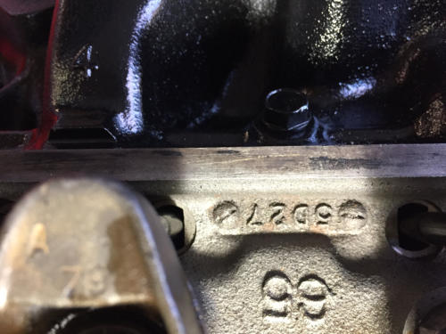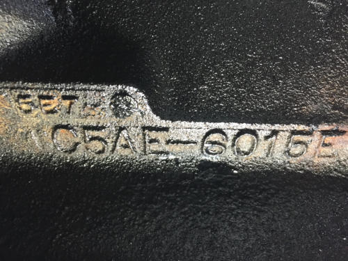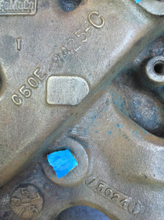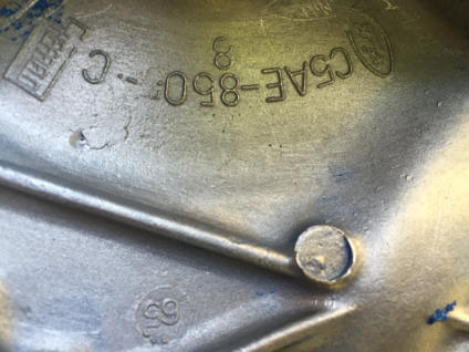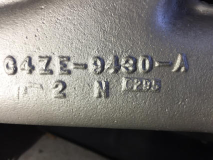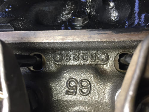 This page contains more K code and GT specific information.Here is the VIN stamped on the close ratio 4sd transmission.The transmission was professionally rebuilt by David Kee and shifts great!A restored HiPo fuel pump with the correct date code was provided by Fred Ballard. (Fred provided several hard to find HiPo parts)Here is a close up of the assembly date 5E14T. It running off the bottom edge of the block face. Here is the block date code (5E7) and casting number.Here are the date codes on the heads: 5D28 and 5D27.Here is the date code for the intake: 5C24.Here is the date code on the timing chain cover:April 65.The engine is at change level 7 and has the cover with the 3 ribs at the top and the aluminum water pump.The HiPo water pump has a date code of March 65.Here are the casting numbers and date codes for the exhaust manifolds.Here is the HP grease pen marking on the rear of the block.Here is the new Scott Fuller HiPo Exhaust system. It was a perfect fit and sounds great!Many thanks to Scott!Here are the correct date coded FoMoCo mufflers: March 65Here is the original stencil markings on the shorter length HiPo drive shaft. They are very faint and was really surprised to find them. The drive shaft had many layers of paint and when I stripped it off to get ready for balancing, they became visible. They seemed to fade even more after a couple of days. There were as two stripes painted near the rear end yoke. No color was visible but you could see that they were there.Here is the disc brake proportioning valve. Date code is 133-5. Also the large disc brake master cylinder.Here is the quick ratio steering box with a date code of 5C31.Here is the reenforcement plate unique to cars with factory dual exhaust.Here is the inductive amp meter wiring that is unique to the 1965 GT.Here are the SC and FoMoCo markings found on the HiPo fanHere are some alternator photos. NOS FoMoCo alternator harness. Alternator is a new unit from Jack Brooks at Dead Nuts On.Original Autolite 4100 4V carb Yellow top coil with April 65 date code.